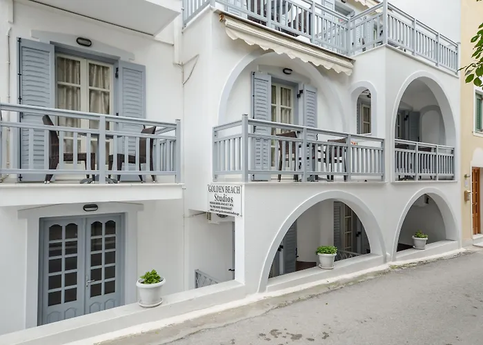 A 4 csillagos Golden Beach Studios Down Town Naxos City hotel közel van a Náxosz Régészeti Múzeum területéhez, amely 11 percnyi sétára található. A Naxos City városi apartmanhotel 25 szobával rendelkezik, amelyekből kilátás nyílik a belső udvarra.